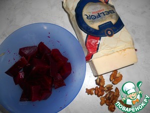 • Подготовить ингредиенты. Отварную свеклу нарезать кусочками.