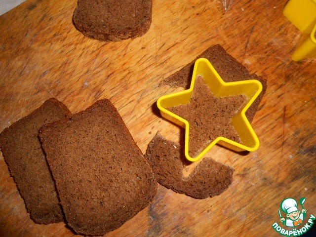 • Из хлеба вырезать звездочки с помощью вырубки для печенья.
