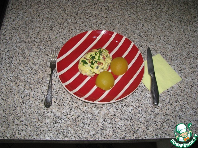 Муж принес брошюрку "Рецепты на бис". Без иллюстраций и "шагов". Просто описание, ну и отзывы приготовивших, с оценкой блюда. Сплошь положительные, хвалебные оды. Решила начать "проверять", с этого рецепта. К сожалению в таких журнальчиках, не всегда бывает указано количество ингредиентов, а только название, ну и действия. Пришлось самой, методом "тыка", создать шаги к приготовлению данного блюда. Посмотрите, что у меня получилось. Мне было интересно! Сверху посыпала кинзой.