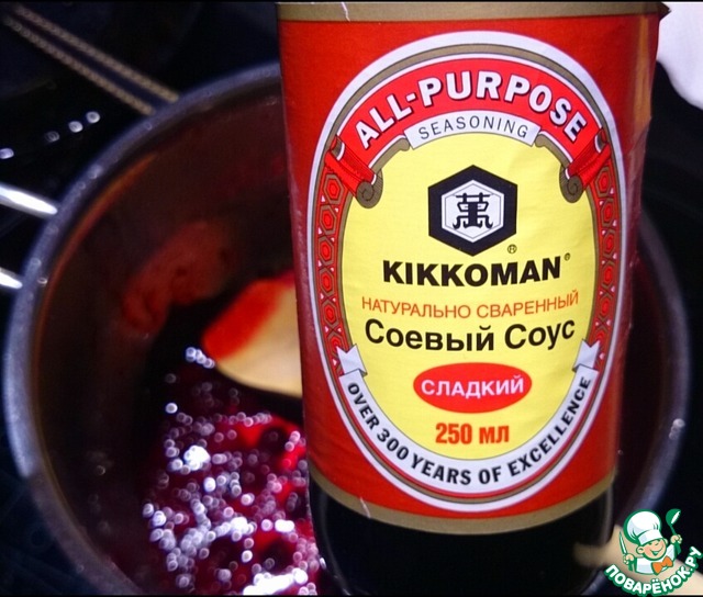 - Соевый соус (сладкий ТМ Kikkoman) — 10 мл