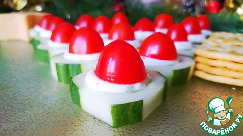 Вкусное сочетание легких овощей и нежного сыра с чесночной ноткой - в интересной форме подачи - как раз для новогоднего фуршета.