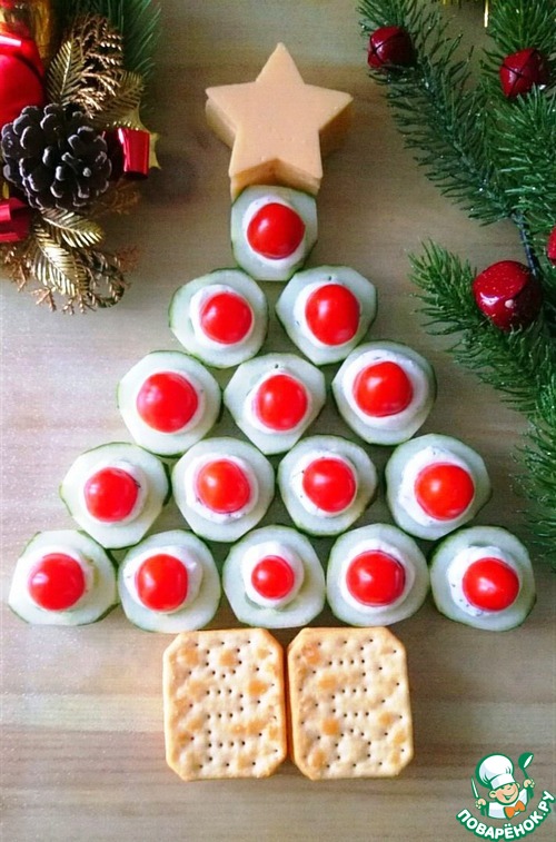 Из твердого сыра можно вырезать звезду, из крекеров - сложить основание ели.