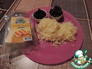 Сыр натереть на мелкой тёрке, чёрные маслины и вяленые томаты по 5 штук я мелко нарезала -