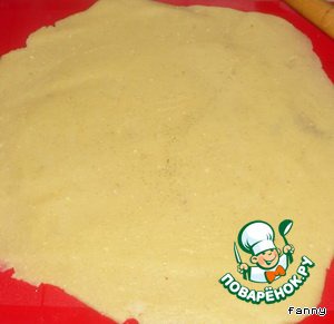 Выложить в форму(диаметр 24 см), сверху выложить начинку.