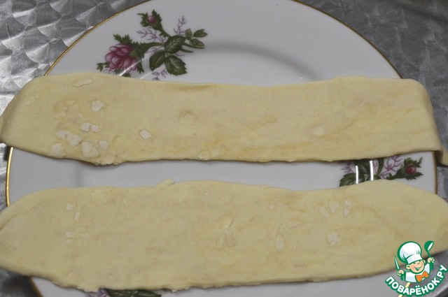 Тесто раскатываем на 4 полоски.