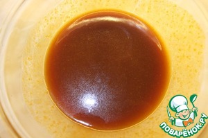 Как только весь сахар растопится, добавляем сливочное масло, перемешиваем и тоненькой струйкой вливаем сливки.