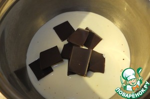 Для ганаша подогреваем сливки и добавляем шоколад кусочками.