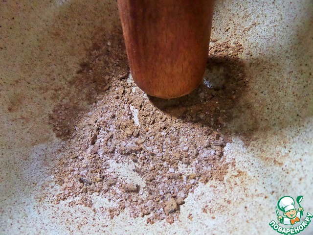 Растираем пестиком.