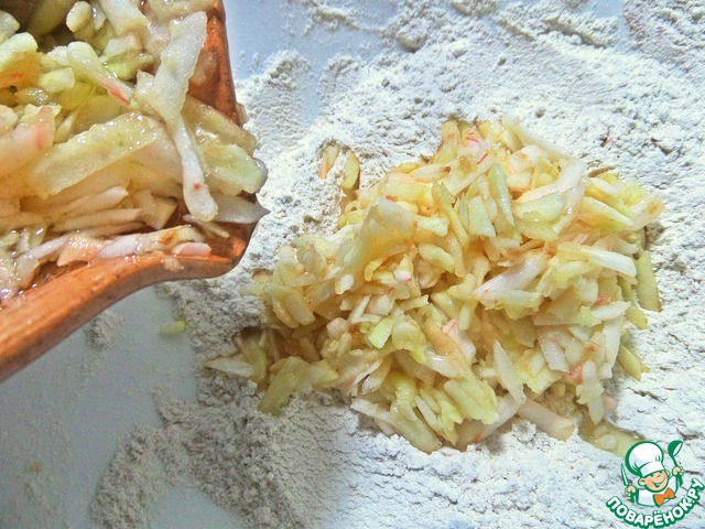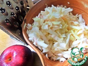 Средние яблоки чистим от кожицы и сердцевинки, строгаем на крупной тёрке или на спец. тёрке для корейской морковки.