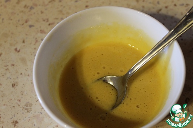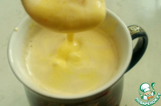 Так повторяем еще два раза. Желток с сахаром должен загустеть и стать более светлым.