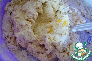 Вымешиваем, добавляя желтки, соду, ванилин. Постепенно вводим муку.