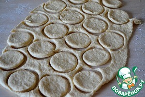 Раскатываем, стаканом вырезаем кружочки -