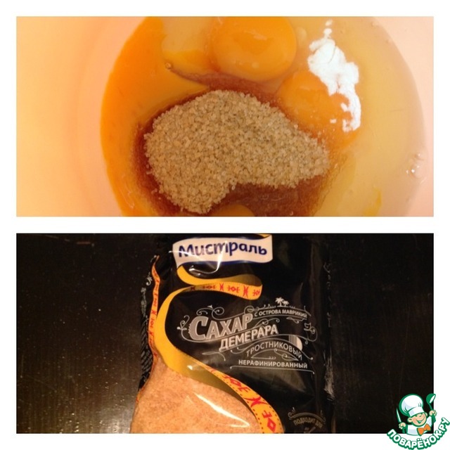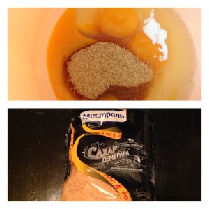 Яйца взбить с сахаром и ванилином в пышную пену.
