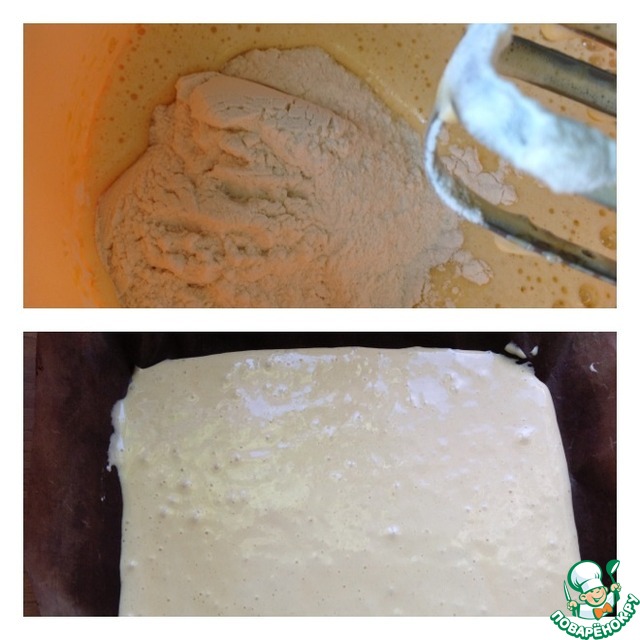 На противень выложить бумагу для выпечки или силиконовый коврик. Вылить тесто и отправить в духовку при 180 гр до готовности. -