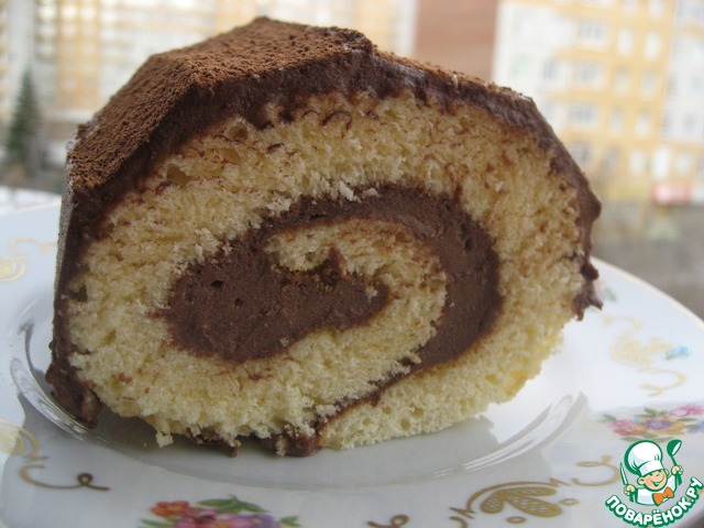 Остудить бисквит, но так, чтобы он был еще теплым. Если совсем остынет, то тяжело будет сворачивать в рулет.