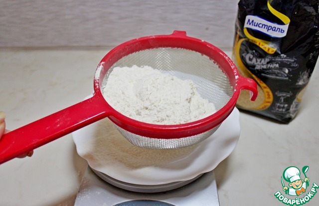 Для приготовления наших подарочных баночек нам надо муку просеять с солью и разрыхлителем.