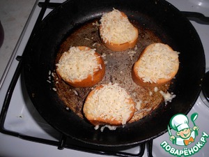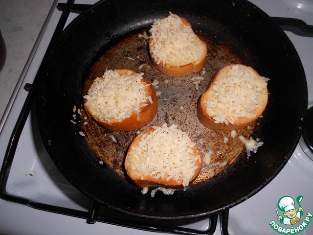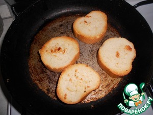 Багет подрумянить на сухой сковороде с обеих сторон до румяного цвета.