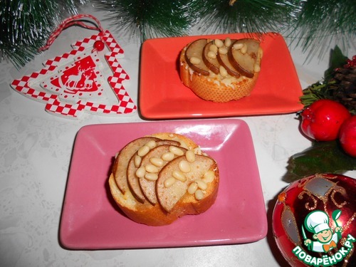 Это несложное в приготовлении блюдо уместно в качестве закуски на праздничный сто. Микс хрустящего хлеба, вкус сладковатого-орехового вкуса сыра и сладкой груши с медовой заправкой и кедровыми орешками никого не оставит равнодушным.