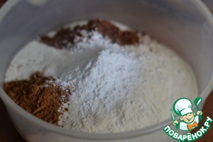 В отдельной миске смешать муку, разрыхлитель, пряности и какао.