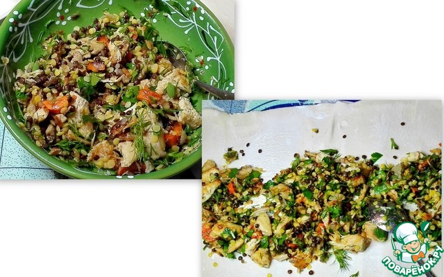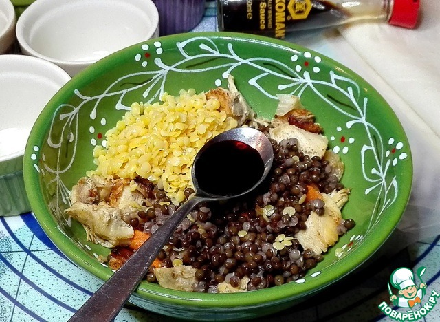 - Чечевица (вареная - 50 г черная, 50 г оранжевая) — 100 г