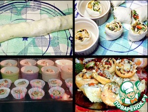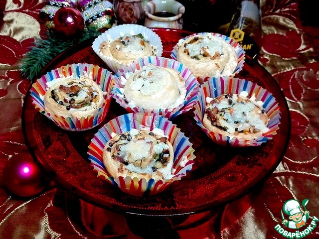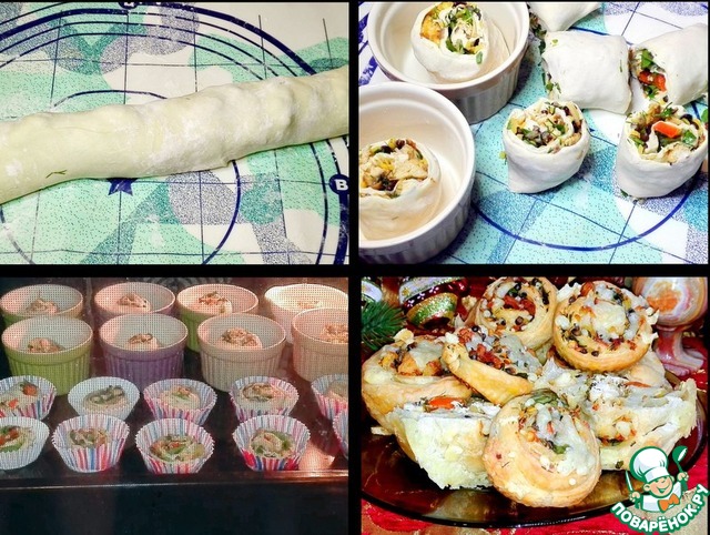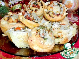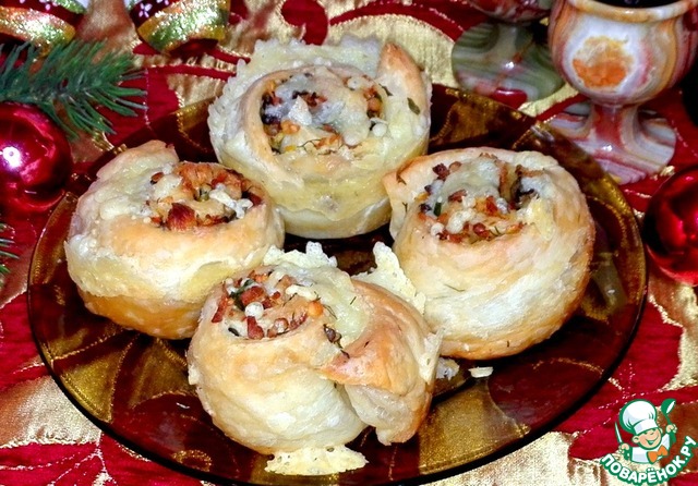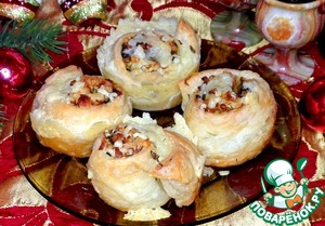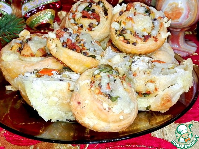 Булочки из слоёного теста с начинкой. Замечательная закуска для праздничного стола или под ёлку в Новогоднюю ночь. Вкусные и сытные!