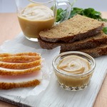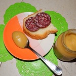 Яблочное пюре я обычно беру готовое, маленькую баночку "Фрутоняни", его как раз хватает на одну порцию. Горчица с таким пюре получается более жидкой, чем обычная, но с намазыванием проблем не возникает, а для салатных соусов она очень удобна. Кстати, можно взять не только яблочное, но и грушевое или грушево-яблочное пюре.
