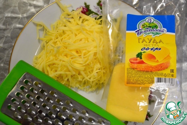 Белебеевский сыр "Гауда" натираем на средней тёрке.