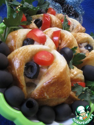 Эта закуска очень проста в исполнении, но от этого не менее вкусная! Тут подойдет наверное любое тесто и начинка, - главное, интересная формовка. Идею нашла на просторах инета, хочу поделиться с вами, может кому и пригодится!