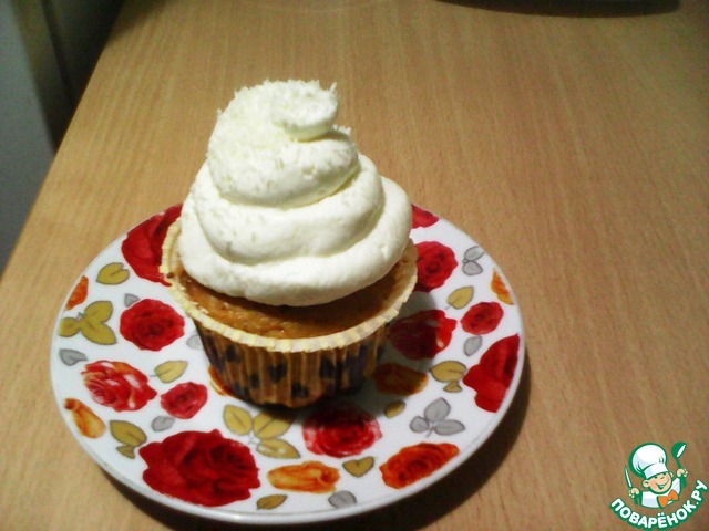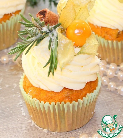 Пряные морковные капкейки с грецкими орехами и изюмом очень хорошо сочетаются с легкой начинкой из ананасового пюре, а нежная шапочка из крем-чиза в сочетании с кокосовой стружкой добавят немного шарма. Нотки корицы, имбиря и мускатного ореха оставят приятное послевкусие. Время остывания капкейков и пюре не учитывается.