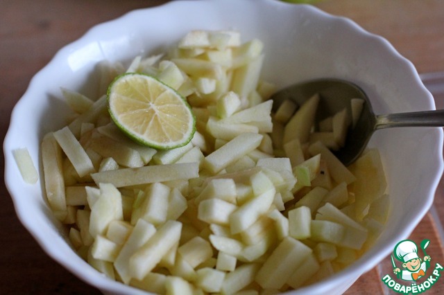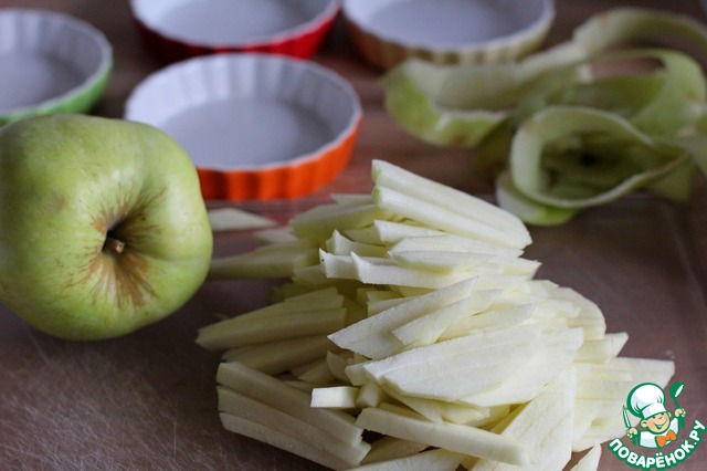 Яблоки порезать на брусочки или полукружки.