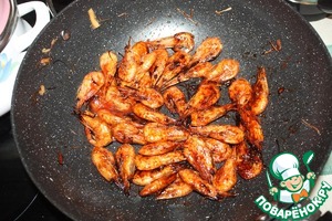 Разогреть масло, обжарить креветок до появления хрустящей корочки.