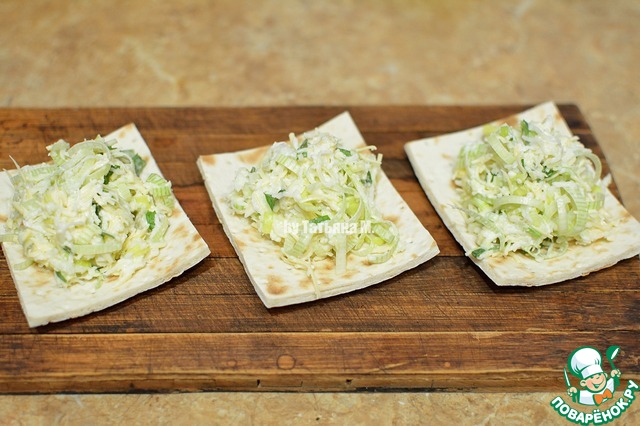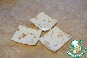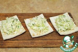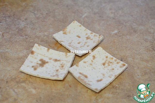 Лепешку порезать на порции (можно круглые, фигурные или квадратные) - тарелочка для салата;