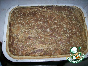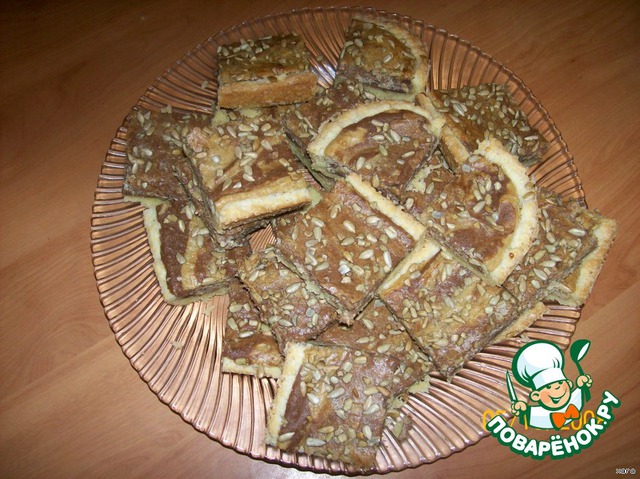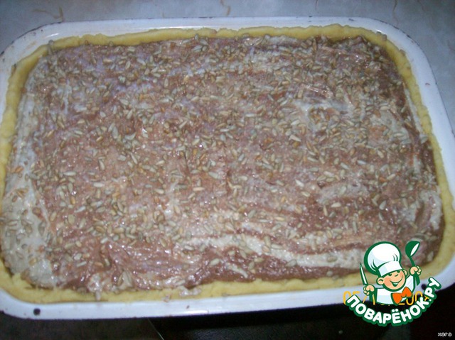 Выложить все на песочную основу, разровнять ножом, посыпать семечками...