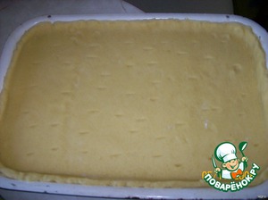 Раскатать тесто в пласт толщиной примерно 1 см, переложить на лист и сформировать бортики 2, 5 -3 см, излишки теста обрезать (из них можно сделать печенье). Наколоть пласт и выпекать 15 мин. при температуре 200 -210 град. почти до полной готовности. -