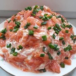 - Рыба (малосольная красная - кета, кижуч, лосось, горбуша, форель, семга, в нарезке) — 200 г