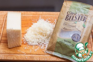 Для сырных чипсов нам понадобится качественный твердый сыр. Я использовала сыр "Бельстер Янг" Белебеевского МК. Натрите его на мелкой терке.