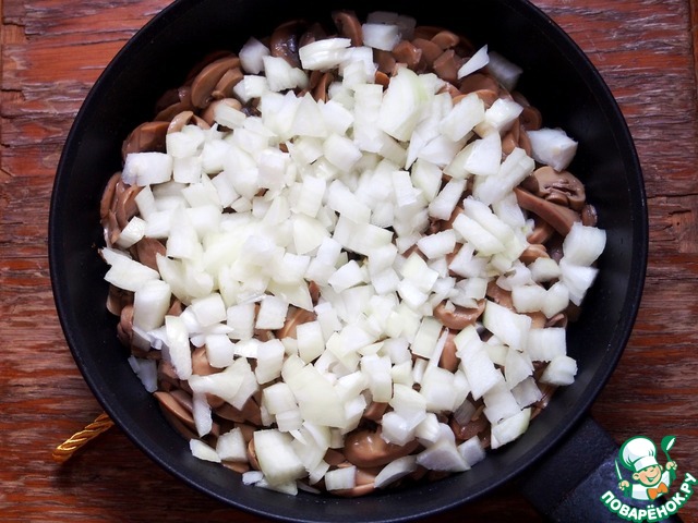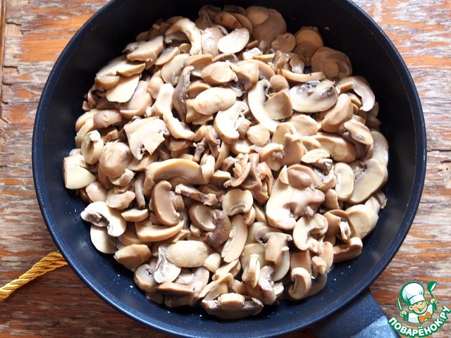 - Шампиньоны (850 мл, консервированные резаные) — 2 бан.