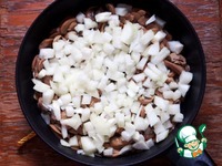 Лук почистить, помыть, нарезать кубиками и добавить к грибам. Обжаривать грибы с луком до готовности. |