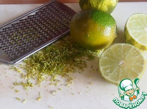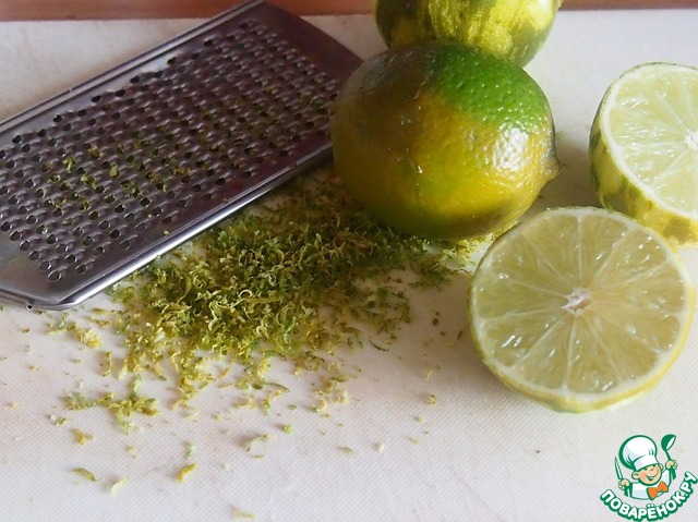 Два лайма тщательно помыть. Затем на мелкой терке натереть цедру и выдавить сок.