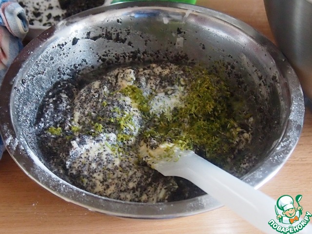 Размягченное масло взбить с сахаром, продолжая взбивать, по одному добавить яйца. Добавить сливки и вмешать в муку. Тесто разделить на две части. В одну часть теста добавить мак, сок и цедру двух лаймов и две столовых ложки сахара. Если тесто вам покажется слишком плотным, добавьте еще ложку или две сливок. Сладкоежкам на этом этапе рекомендую попробовать тесто на сахар, потому что лаймы бывают разные, у меня были средней величины, скорее мелкие, чем крупные.