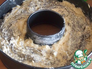 В другую половину теста добавить ликер, если нет ликера добавьте ром. Если кекс будут есть дети, то алкоголь можно не добавлять. Светлое тесто разложить поверх макового и с помощью вилки в нескольких местах вытянуть маковое тесто наверх.