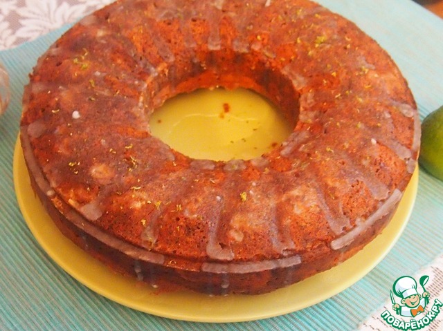 Сахарную пудру и сок одного лайма смешать и полить полностью остывший кекс. Если хотите, чтобы глазурь была более густая и белая, чем у меня, добавте еще пудры. Сверху посыпать кекс лаймовой цедрой.