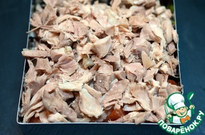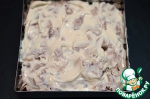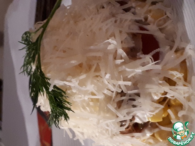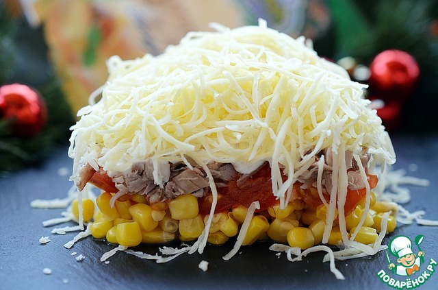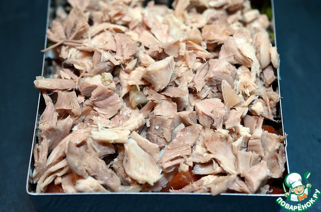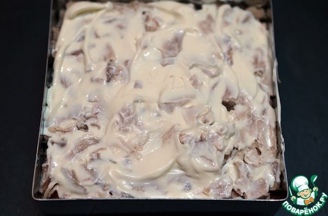 (Если у Вас кольцо, - будет ещё лучше, но и в квадрате салат в итоге будет похож на сугроб). -