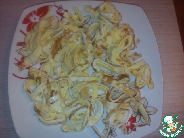 Очень люблю этот суп. Яичная лапша здесь является неотъемлемым ингредиентом. Легкий и очень красивый получается супчик.