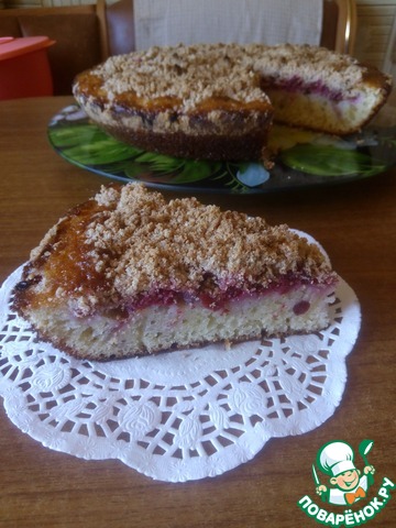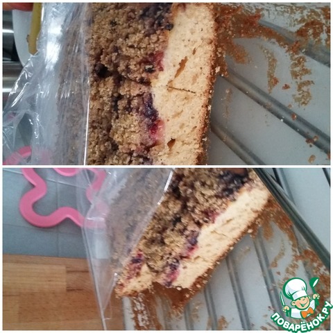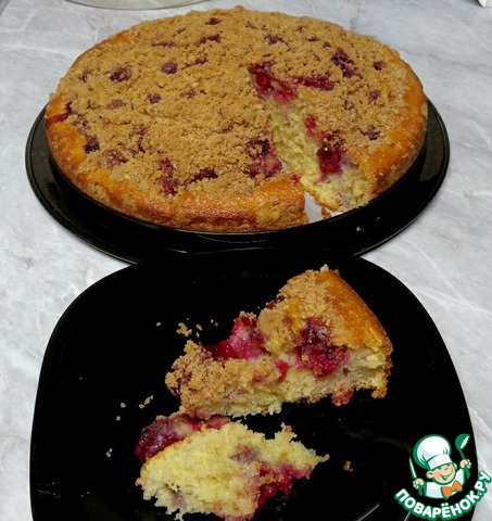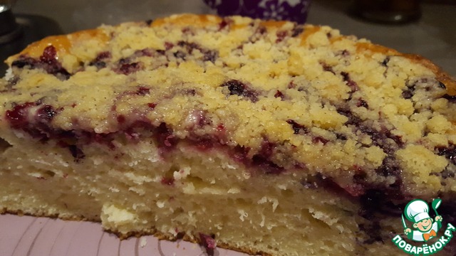 Прочитав отзывы, переживала, что у меня не получится. Нет, пирог получился хорош. Делала его с ассорти ягод: вишней-клюквой-малиной, буду пробовать и с другими, хотя малину точно исключу. И без посылки - мы ее не особо любим, пирог и так вкусный.