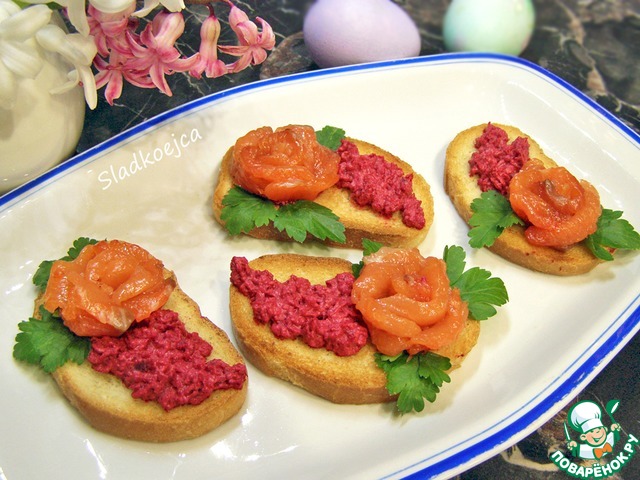 Рецепт «Брускетта со свекольным кремом и семгой»: