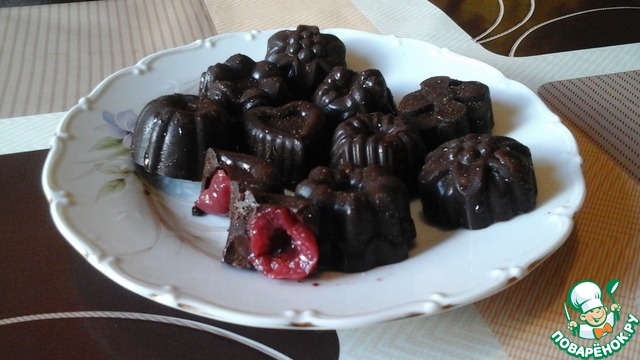 По сезону можно добавлять свежие ягоды, я делала с черешней, ничем не закрепляла, шоколад отлично держит начинку.