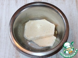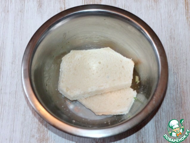 • 3. Замачиваем белый хлеб без корки в молоке, затем отжимаем и кладем в большую миску.