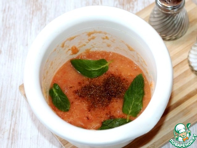 • 9... солим и измельчаем до гладкой консистенции. При необходимости корректируем вкус.