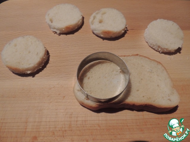 Берем любой тостерный хлеб, и высечками для теста вырезаем необходимого размера кружки
